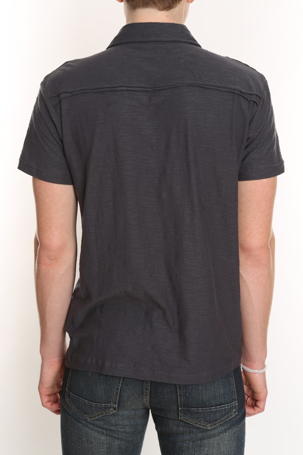 Slim fit. Two chest pockets. Silver grommet detail. Grinding and nicking at hems. 100% cotton. - Additional Information