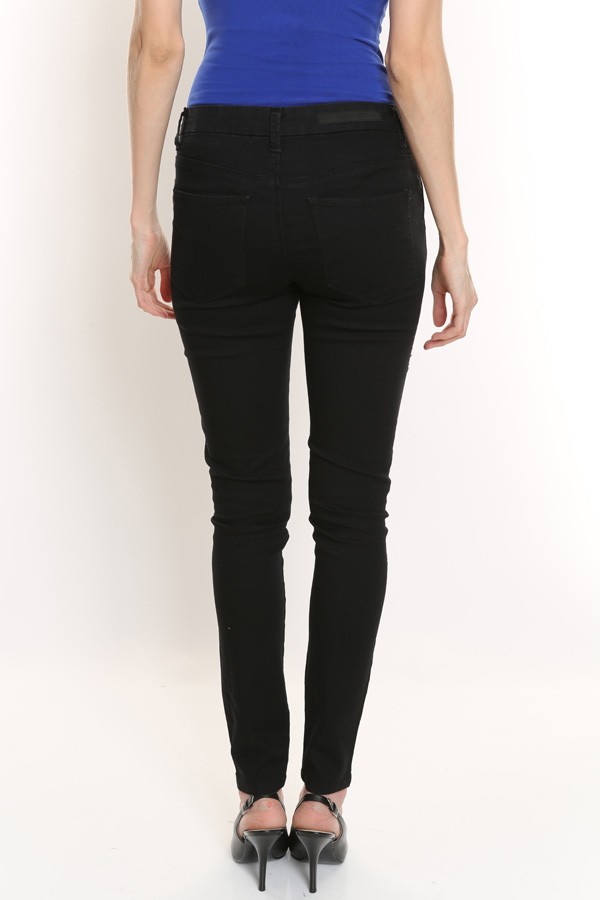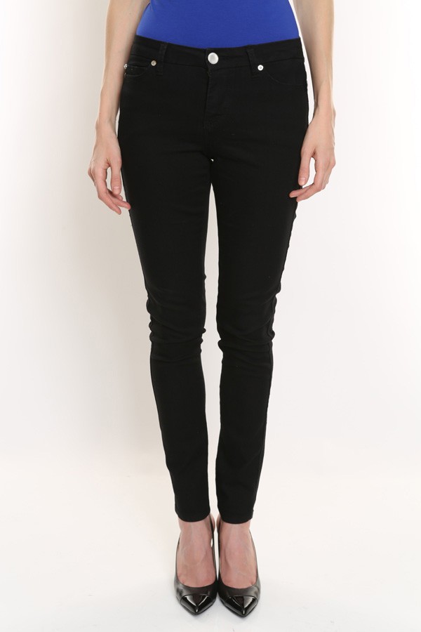 Ultra slim-fit, stretch denim. Mid rise. 5 pockets, tonal stitching,. Cotton. Machine wash.